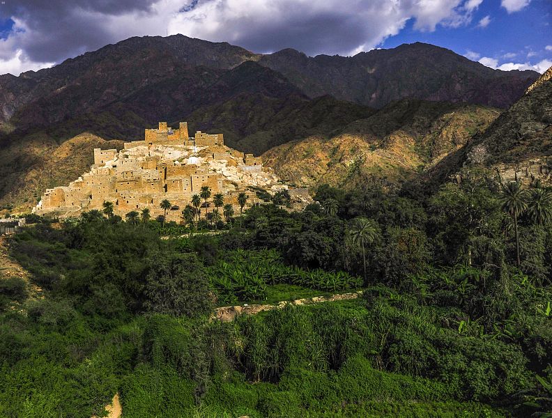في الجزء الجنوبي الغربي من المملكة تتربع منطقة الباحة التي يتوزع سكانها على نحو 1200 قرية، ومنها قرية “ذي عين التراثية” التي يعود تاريخ إنشائها إلى قرون مضت، وتتميز بوجود 58 قصرًا تراثيا شيّدت من الحجارة المسقوفة بأشجار العرعر، لتصبح على مر الزمان منارة تاريخية تطل عليها الباحة من على جبال سراتها الشاهقة.