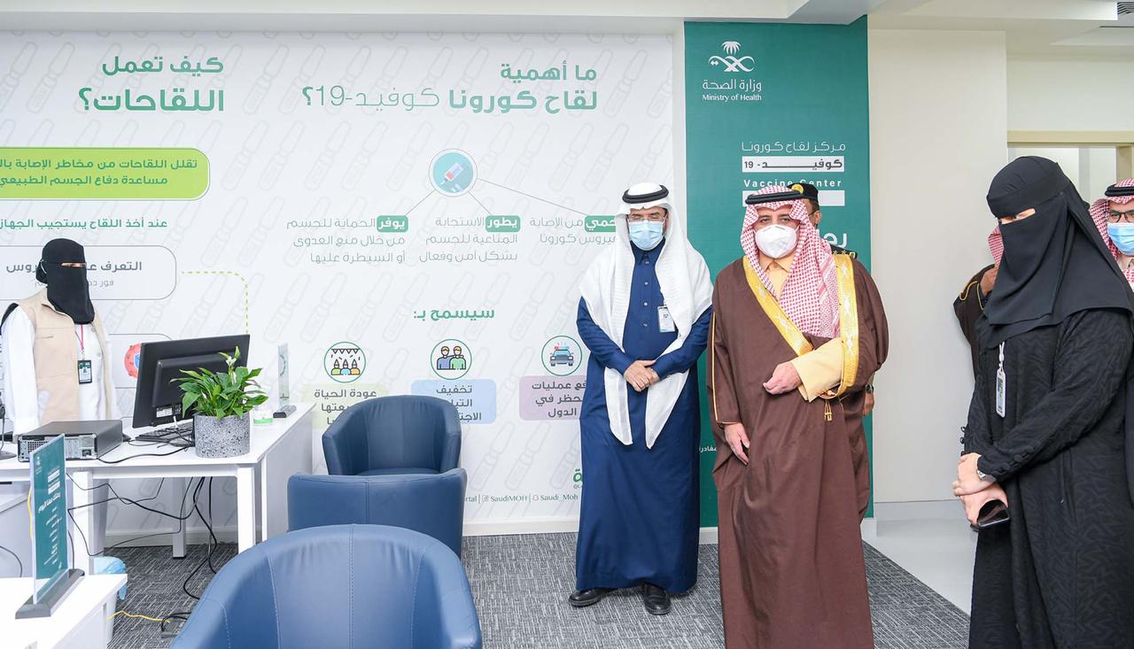 واطّلع خلال الجولة على العيادات المخصصة للتطعيم ضد كورونا بالمركز والسعة الاستيعابية بها، والعدد المستهدف لكل عيادة والوقت المستغرق للشخص في أخذ اللقاح والتي جرى تهيئتها بطريقة تسمح باستقبال أعداد كبيرة ومنظمة ويديرها نخبة من الكوادر والأطقم الطبية المتخصصة، مستمعاً لشرح مفصل عن الإجراءات المتبعة من بداية التسجيل حتى أخذ اللقاح وعلى الآلية المتبعة في هذا الشأن، وكيفية التأكد من البيانات المسجلة من قِبل المواطن أو المقيم حسب الفئات المستهدفة التي وُضعت من قبل وزارة الصحة.
