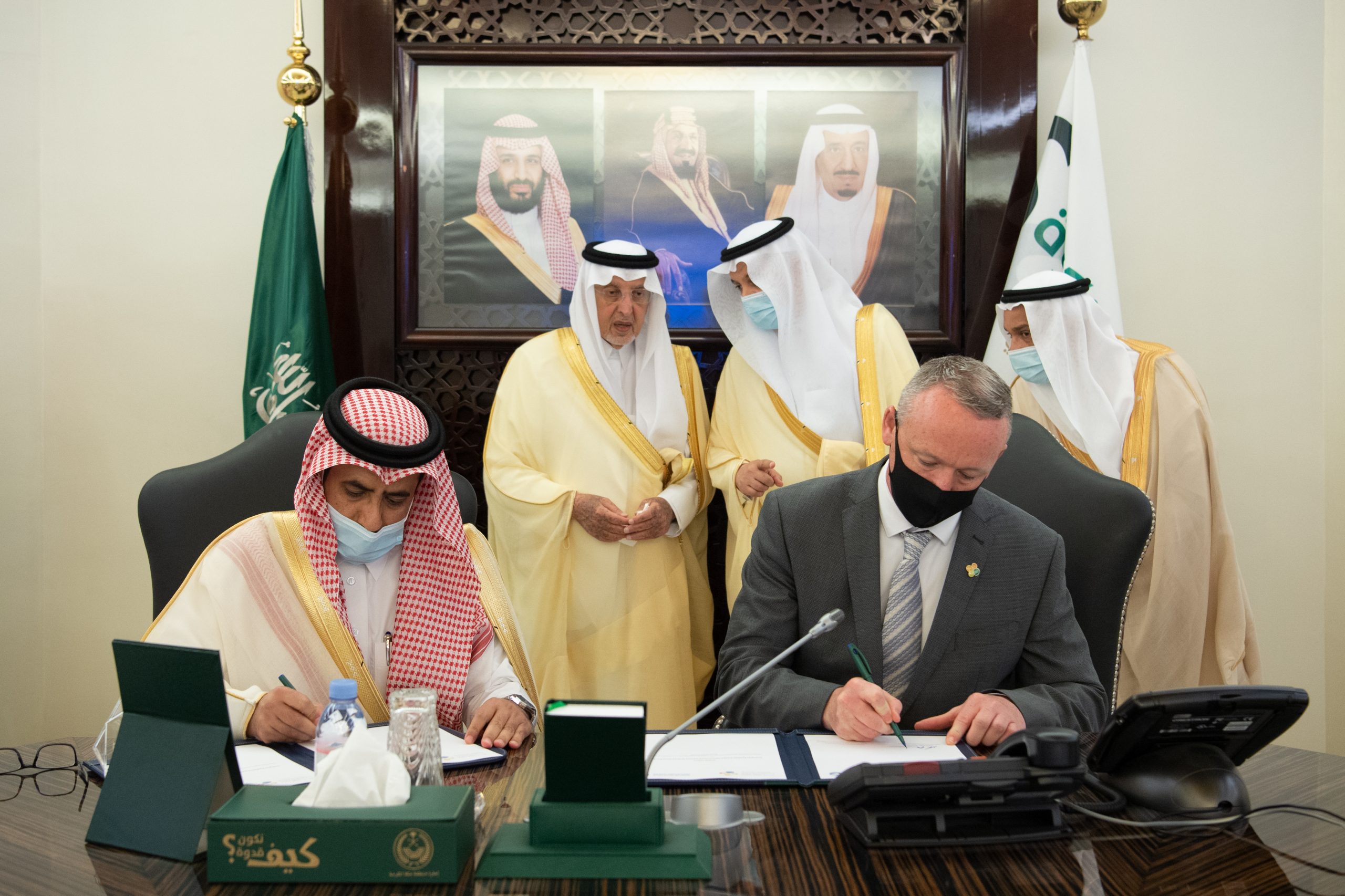 من جهة أخرى، شهد سمو أمير منطقة مكة المكرمة أيضًا توقيع مذكرة تفاهم بين شركة المياه الوطنية وجامعة الملك عبد الله للعلوم والتقنية (كاوست)، للتعاون ونقل المعرفة في برامج بحثية تشمل الموضوعات ذات الاهتمام المشترك بين الطرفين في مجالات تقنيات المعالجة الصحية، ومثل شركة المياه الوطنية في مراسم توقيع مذكرة التفاهم المهندس منصور بن محمد أبوثنين نائب الرئيس للمشاريع والخدمات الفنية، فيما مثل جامعة الملك عبدالله للعلوم والتقنية البروفيسور ماثيو فرانسيس ماكابي.