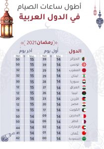 الإنفوجراف التالي يوضح أطول ساعات الصيام في الدول العربية: