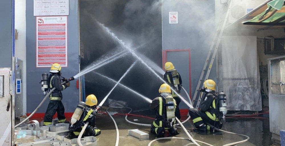 أخمد مدني الدمام حريقًا في عدد من ورش صيانة المركبات، دون وقوع إصابات،
