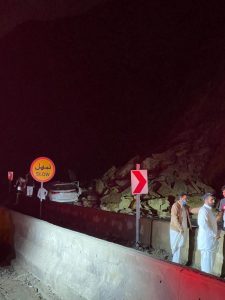 وقالت مصادر “سبق” إن الحادث نتج عنه إصابة شخصين وتضرر مركبتين فيما لا تزال المعدات الثقيلة التابعة لوزارة النقل تعمل على رفع الصخور لفتح الطريق والتأكد من عدم وجود مركبات تحتها.