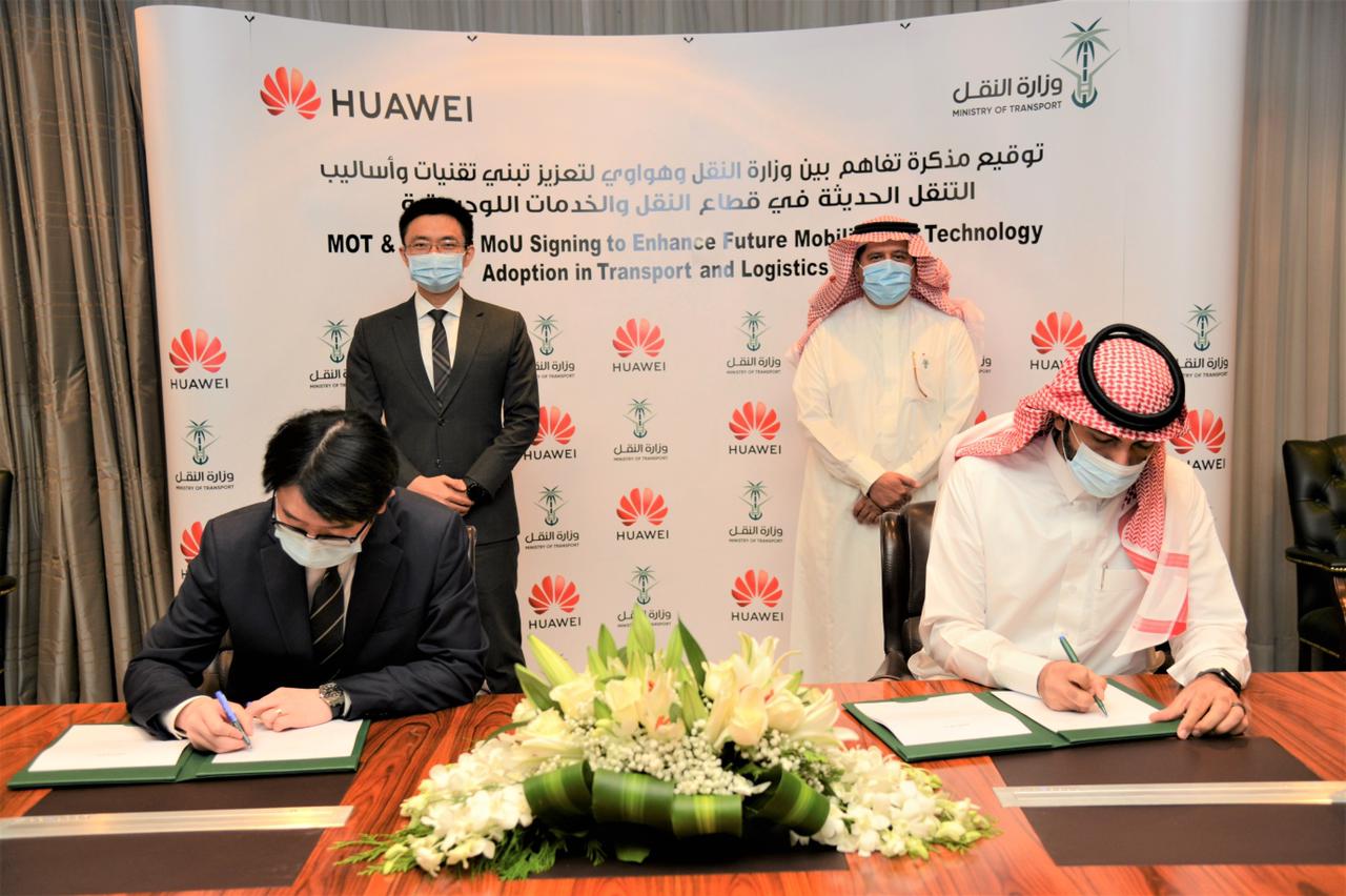 وقعت وزارة النقل مع شركة هواوي مذكرة تفاهم لتعزيز تبني تقنيات وأساليب التنقل الحديثة في قطاع النقل والخدمات اللوجستية، وذلك لبحث فرص استخدام تقنيات متقدمة مثل الجيل الخامس والذكاء الاصطناعي والبيانات الضخمة في مجال النقل والخدمات اللوجستية، وتعد هواوي أحد الشركة العالمية الرائدة في مجال توفير البنية التحتية لتقنية المعلومات والاتصالات والأجهزة الذكية.