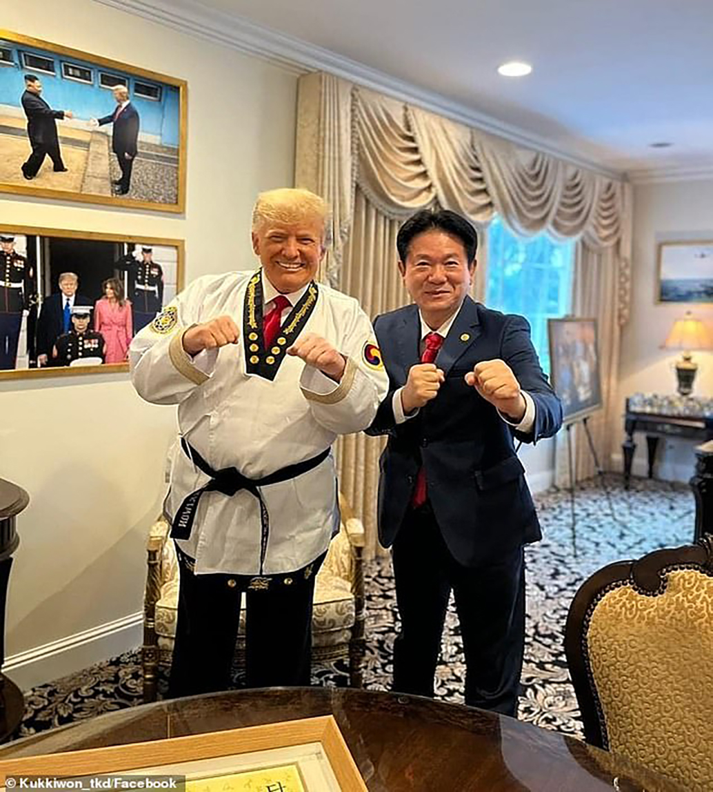 وزار لي دونغ، رئيس أكاديمية التايكوندو العالمية، الرئيس الأمريكي السابق دونالد ترامب في منزله بمنتجع “مار إيه لاغو” لمنحه الحزام الأسود وشهادة فخرية.