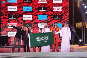 ومع ختام هذه المرحلة تُوّج المتسابق القطري ناصر العطية سائق فريق “تويوتا” بالمركز الأول في فئة السيارات، متفوقاً على الفرنسي “سيباستيان لويب” سائق فريق “بي آر إكس” صاحب المركز الثاني، فيما سجل السعودي يزيد الراجحي سائق “أوفر درايف” إنجازاً تاريخياً بتحقيقه المركز الثالث، كأول سعوديٍ يصعدُ منصة التتويج برالي داكار منذ انطلاقه قبل 44 عاماً.