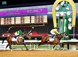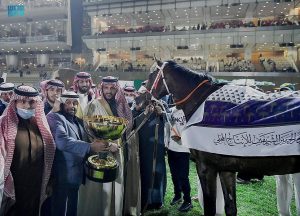 وشهد الحفل شوطاً مخصصاً للمنافسة على “هدية وكؤوس خادم الحرمين الشريفين للخيالة السعوديين المتمرنين” على مسافة 2000 متر، وتبلغ جائزته 120 ألف ريال، بالإضافة إلى الهدية العينية لصاحب الجواد الفائز، وحقق المراكز الثلاث الأول: الأول الخيال سلطان الميموني، والثاني الخيال أحمد الشرار والثالث الخيال محمد الشريماء.