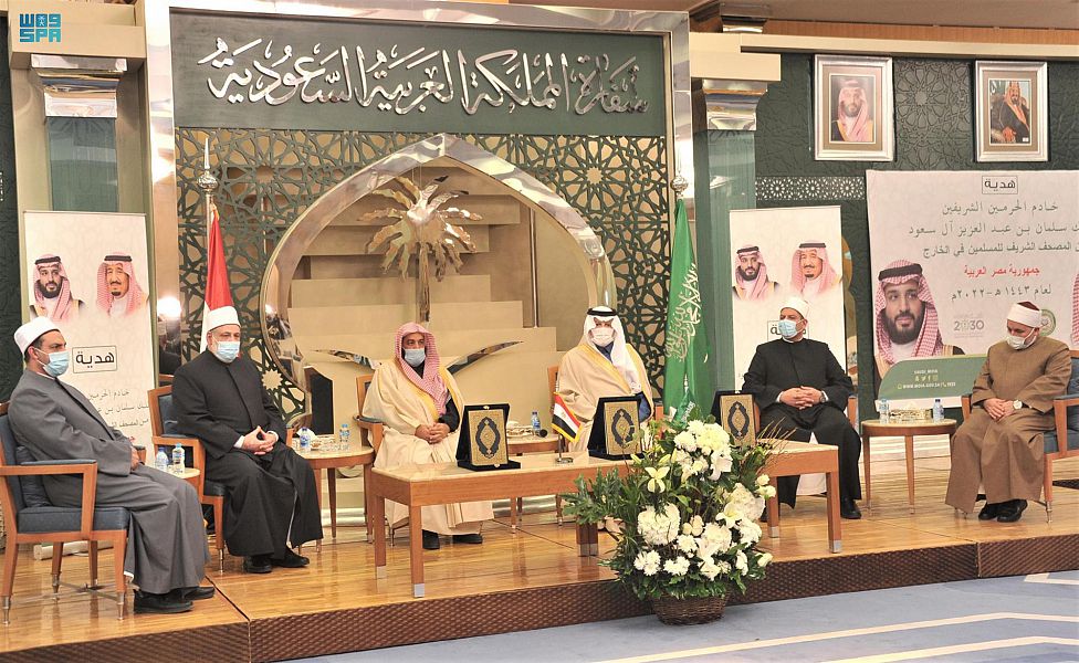 نيابة عن معالي وزير الشؤون الإسلامية والدعوة والإرشاد الشيخ الدكتور عبداللطيف بن عبدالعزيز آل الشيخ، سلّم وكيل الوزارة للشؤون الإسلامية الشيخ عواد بن سبتي العنزي، بمقر سفارة المملكة لدى القاهرة اليوم، الدفعة السادسة من هدية خادم الحرمين الشريفين البالغة (100000) نسخة من المصاحف الشريفة بمختلف الأحجام وترجمات القرآن الكريم إلى جمهورية مصر العربية، وذلك بحضور سفير خادم الحرمين الشريفين لدى مصر أسامة بن أحمد نقلي، وممثلين عن الأزهر ووزارة الأوقاف ودار الإفتاء المصرية.