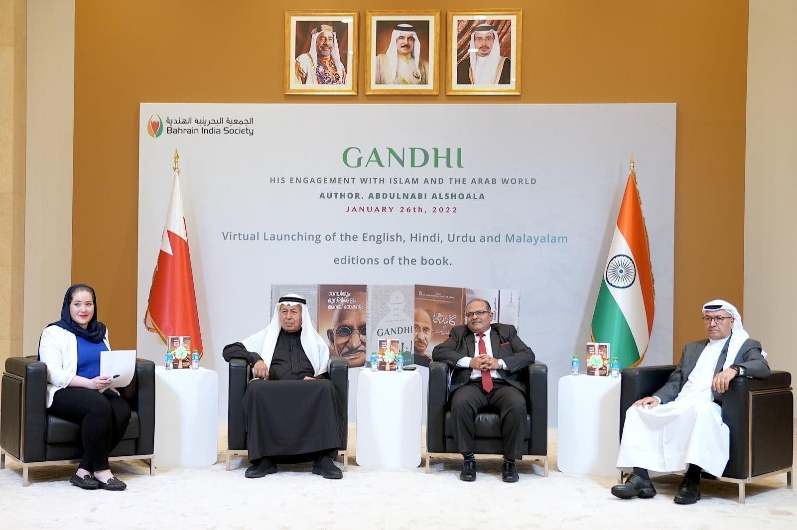 نظمت الجمعية البحرينية الهندية حفل تدشين كتاب “غاندي.. وقضايا العرب والمسلمين” للمؤلف عبدالنبي الشعلة، بـ 4 لغات مترجمة، وهي الإنجليزية والهندية والمالايالامية والأوردو، في حفل أقيم في مركز في مركز عيسى الثقافي في المنامة، وجرى بثه مباشرة عبر تقنية الاتصال المرئي “زووم”، بحضور مئات المهتمين من مملكة البحرين، والهند، ومصر ومن مختلف دول مجلس التعاون الخليجي.