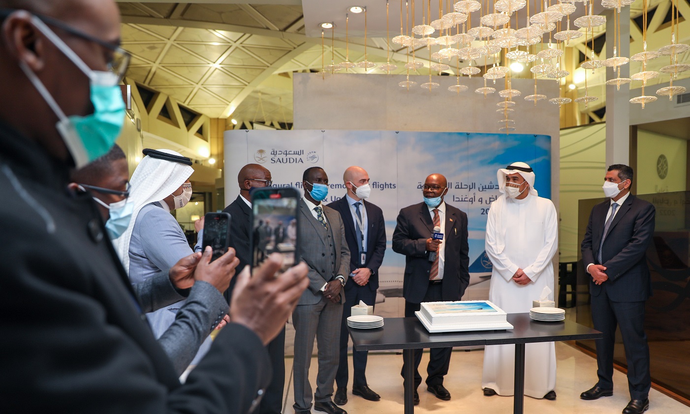 أطلقت الخطوط السعودية رحلاتها المباشرة والمنتظمة بين المملكة وجمهورية أوغندا، وذلك على متن أول رحلة من مطار الملك خالد الدولي إلى مطار إنتيبي الدولي، وذلك خلال الحفل الذي أقيم بصالة الفرسان بمطار الملك خالد الدولي بالرياض، بحضور سفير خادم الحرمين الشريفين لدى جمهورية أوغندا جمال محمد المدني وسفير أوغندا لدى المملكة إسحاق بيروما سيبوليم.