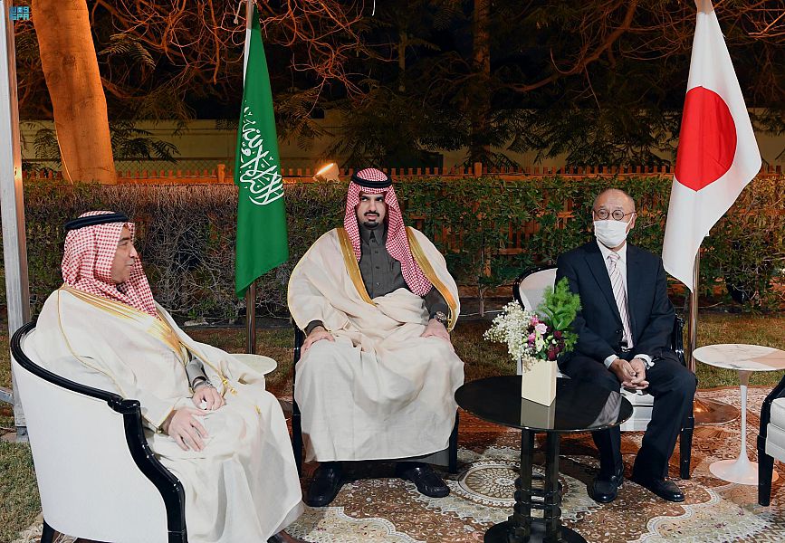 وكان في استقبال سموه لدى وصوله مقر الحفل، سفير اليابان لدى المملكة فوميو إيواي وعدد من منسوبي السفارة.