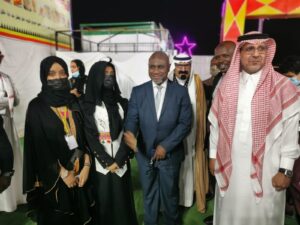 وفور وصول معاليه الى أرض الحفل جرت له مراسم الاستقبال والمشاركة في العرضة والاستمتاع بفقرات الحفل. من جانبه شكر معالي نائب القنصل الجابوني خادم الحرمين الشريفين الملك سلمان بن عبدالعزيز آل سعود وسمو ولي عهده الأمين محمد بن سلمان بن عبدالعزيز آل سعود والشعب السعودي الكريم حيث نقل تحيات فخامة رئيس الجمهورية والحكومة الجابونية وتمنى من الله ان يحفظ بلاد الحرمين الشريفين ويوفق قادتها الى كل خير.