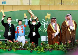 حضر حفل سباق “كأس السعودية”، كل من: صاحب السمو الملكي الأمير خالد الفيصل مستشار خادم الحرمين الشريفين أمير منطقة مكة المكرمة وصاحب السمو الملكي الأمير عبدالرحمن العبدالله الفيصل وصاحب السمو الملكي الأمير متعب بن عبدالله بن عبدالعزيز وصاحب السمو الملكي الأمير فيصل بن خالد بن عبدالعزيز مستشار خادم الحرمين الشريفين وصاحب السمو الملكي الأمير يزيد بن سعود بن عبدالعزيز وصاحب السمو الملكي الأمير الوليد بن طلال بن عبدالعزيز وصاحب السمو الأمير بندر بن سعود بن محمد وصاحب السمو الأمير الدكتور بندر بن سلمان بن محمد وصاحب السمو الملكي الأمير عبدالعزيز بن أحمد بن عبدالعزيز وصاحب السمو الملكي الأمير محمد بن خالد العبدالله رئيس مجلس إدارة stc وصاحب السمو الملكي الأمير فيصل بن خالد بن سلطان بن عبدالعزيز أمير منطقة الحدود الشمالية وصاحب السمو الملكي الأمير نواف بن فيصل بن فهد بن عبدالعزيز وصاحب السمو الملكي الأمير بندر بن فيصل بن بندر بن عبدالعزيز مساعد رئيس الاستخبارات العامة وصاحب السمو الملكي الأمير فهد بن خالد بن سلطان بن عبدالعزيز، وصاحب السمو الملكي الأمير سعود بن سلمان بن عبدالعزيز وصاحب السمو الملكي الأمير مشعل بن سلطان بن عبدالعزيز وصاحب السمو الملكي الأمير محمد بن سلطان بن ناصر بن عبدالعزيز وصاحب السمو الملكي الأمير سلمان بن سلطان بن سلمان بن عبدالعزيز وصاحب السمو الملكي الأمير فواز بن بندر بن عبدالعزيز وصاحب السمو الملكي الأمير محمد بن فيصل بن محمد بن سعود بن عبدالعزيز وصاحب السمو الملكي الأمير عبدالمجيد بن عبدالإله بن عبدالعزيز وصاحب السمو الملكي الأمير فيصل بن أحمد بن سلمان بن عبدالعزيز.