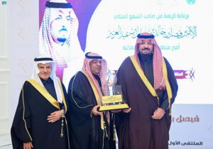 بعد ذلك تسلم سمو أمير منطقة الحدود الشمالية، درعاً تذكارياً من جمعية إعلاميي الحدود الشمالية.
