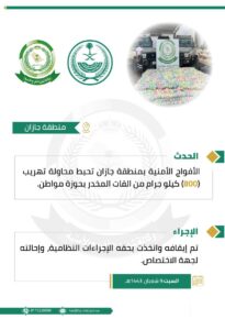 الداخلية: الأفواج الأمنية بمنطقة جازان تحبط محاولة تهريب 800 كيلو جرام من القات المخدر