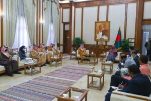 جرى خلال الاستقبال، استعراض العلاقات الثنائية بين البلدين وفرص تطويرها في المجالات كافة بما يحقق المصالح المشتركة للبلدين والشعبين الصديقين، بالإضافة إلى بحث عدد من القضايا والمستجدات الإقليمية والدولية ذات الاهتمام المشترك. حضر الاستقبال سفير خادم الحرمين الشريفين لدى جمهورية بنغلاديش عيسى بن يوسف الدحيلان، ومدير عام مكتب سمو وزير الخارجية عبدالرحمن الداود