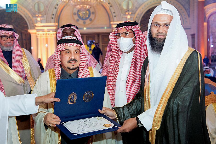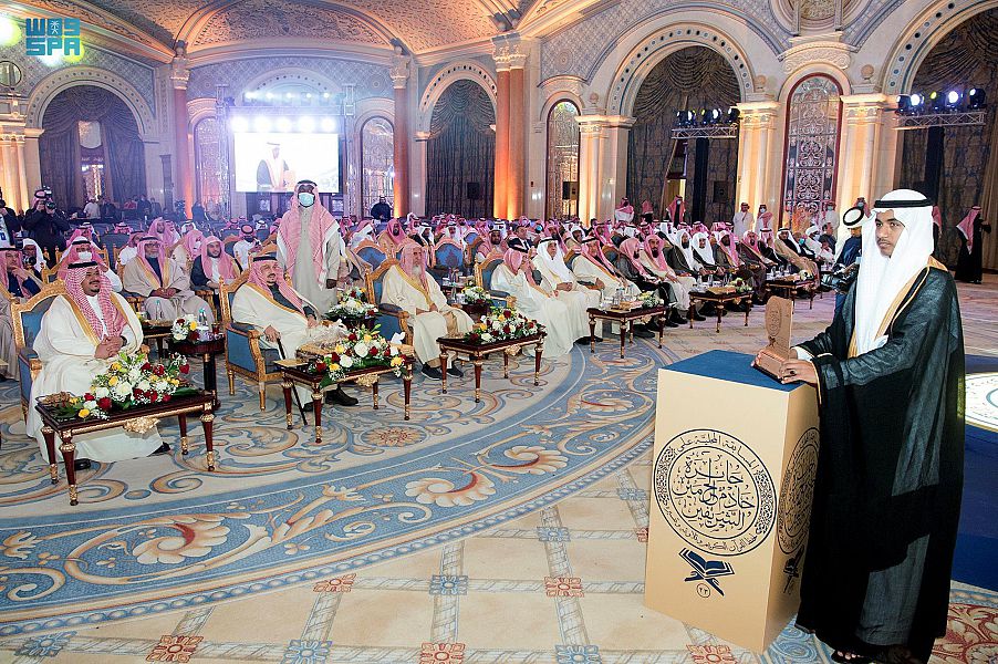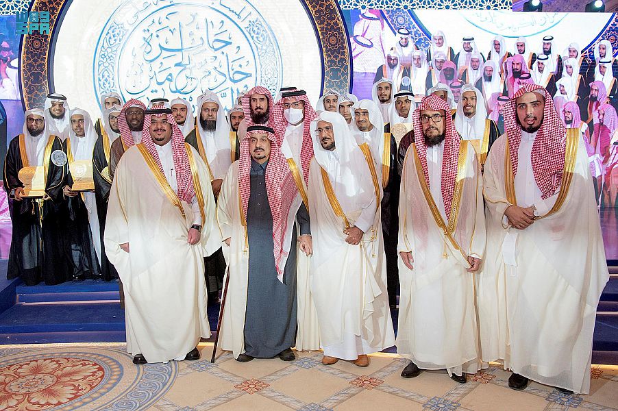 نيابة عن خادم الحرمين الشريفين الملك سلمان بن عبدالعزيز آل سعود – حفظه الله – رعى صاحب السمو الملكي الأمير فيصل بن بندر بن عبدالعزيز أمير منطقة الرياض، بحضور صاحب السمو الملكي الأمير محمد بن عبدالرحمن بن عبدالعزيز نائب أمير منطقة الرياض مساء اليوم حفل تكريم الفائزين بالمسابقة المحلية على جائزة الملك سلمان بن عبدالعزيز لحفظ القرآن الكريم وتلاوته وتفسيره للبنين، التي تنظمها وتشرف عليها وزارة الشؤون الإسلامية والدعوة والإرشاد في دورتها الثالثة والعشرين لعام 1443هـ، في فندق الريتز كارلتون بالرياض.