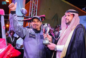 توج وكيل محافظة المجمعة خالد البابطين اليوم الفائزين بالنسخة الأولى لرالي سدير، والذي أقيم بإشراف الاتحاد السعودي للسيارات والدراجات النارية.