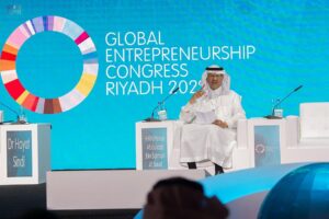وقال سموه خلال مشاركته في جلسة حوارية ضمن فعاليات المؤتمر العالمي لريادة الأعمال (GEC) الذي تنظمه الهيئة العامة للمنشآت الصغيرة والمتوسطة “منشآت” بالتعاون مع الشبكة العالمية لريادة الأعمال (GEN): “مادمنا محظوظين بقائد بمثل هذه الصفات، فمن البديهي أن في هذا البلد عددًا كبيرًا من الشابات والشباب بالطموح والحماس والعزم نفسه يعملون لمستقبلهم ومستقبل بلدهم”.