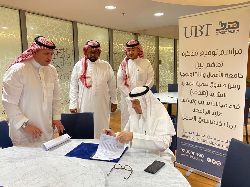 أبرم صندوق تنمية الموارد البشرية (هدف) وجامعة الأعمال والتكنولوجيا الأهلية الخميس الماضي اتفاقية تعاون لدعم توظيف خريجي الجامعة والطلاب المتوقع تخرجهم، بهدف زيادة قدرتهم التنافسية في سوق العمل ورفع نسبة التوظيف، وذلك ضمن مبادرة “هدف” في برنامج دعم مكاتب توظيف الخريجين بالجامعات.
