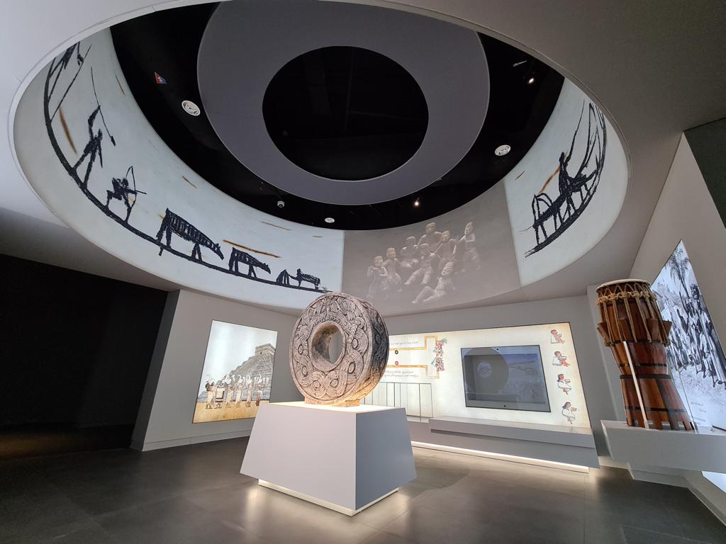 2. تاريخ الرياضة العالمية. ترسم هذه الصالة خطوط التدرج الزمني لنشأة الألعاب الرياضية في جميع أنحاء العالم، وهي تقدم ما يقارب المائة من المواد الأصلية والمعاد إنتاجها والتي يمتد تاريخها من القرن الثامن قبل الميلاد وحتى يومنا هذا، وتتضمن رسوما بيانية وتجهيزات مرئية ومسموعة ورقمية وتفاعلية.