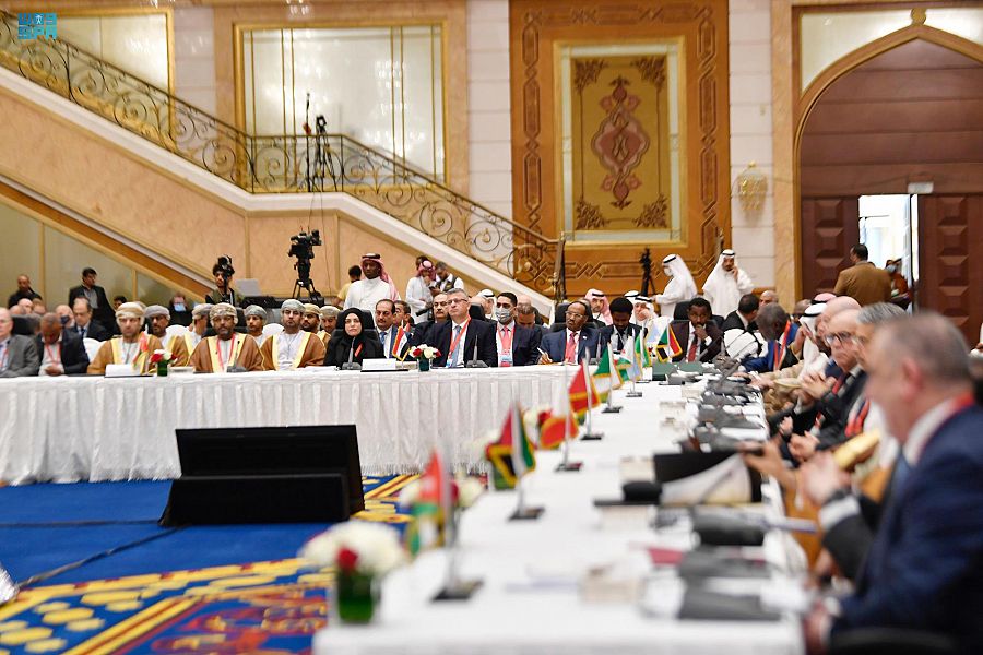 ونقل معالي وزير المالية لرؤساء وأعضاء الوفود المشاركة تحيات خادم الحرمين الشريفين الملك سلمان بن عبد العزيز -حفظه الله- وتهنئته لهم بشهر رمضان الكريم، مؤكدًا أن المملكة العربية السعودية ستظل داعمةً للعمل العربي المشترك، ومُسهمةً في تنمية العلاقات الاقتصادية بين الدول العربية عبر المؤسسات التنموية الإقليمية، مشددًا على أن المملكة حاضرة دائمًا للمساعدة ومدّ يد العون لمواجهة الأزمات الطارئة والإنسانية، وسبّاقة لدعم الجهود التنموية والاقتصادية والاجتماعية في الدول العربية، وجميع المحافل الدولية.