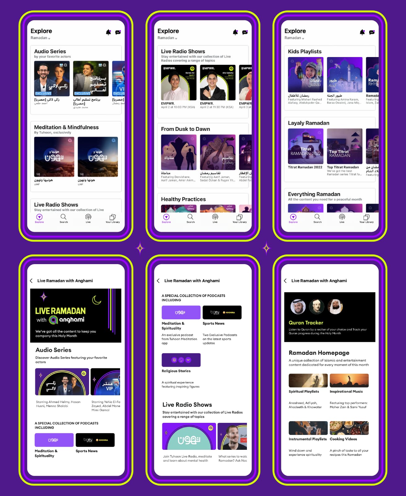 تقدم “أنغامي” باقة استثنائية من البرامج الدينية والتعليمية والترفيهية خلال شهر رمضان المبارك، لتتيح للمستخدمين الاستمتاع بتجربة رمضانية مميّزة على التطبيق.