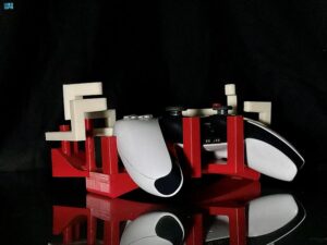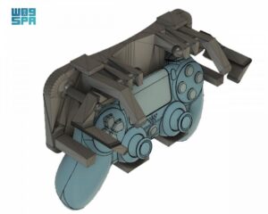 وتتكون أداة الـدعم من قـالب يعمـل كقـاعـدة لتثبيت وحدة التحكم، يشتمل القالب على حاجزين أمـاميين وحـاجزين جـانبيين،يتم من خلالهما تثبيت وحدة التحكم، وتضم أداة الـدعم أربعـة مقـابض يجري من خلال دفعهم الضغط على الأزرار الخلفية لوحـدة التحكم، ويوجد في القالب كـذلك فتحتان جانبيتان تثبيت خلالهما أداة دعم وحـدة التحكم من خلال أربطة عريضـة مرنـة ، تُمرَّر من الفتحتين وربطهمـا على رجلي المريض، أو يد الكرسي المتحرك الخاص به.