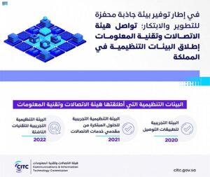 وتأتي هذه البيئة انطلاقاً من دور الهيئة التنظيمي لتطوير قطاع الاتصالات وتقنية المعلومات لمواكبة التطورات المتسارعة، وتوفير بيئة جاذبة ومحفزة للتطوير والابتكار، وتعزيز الشفافية والمنافسة، وتمكين وصول الخدمات لجميع المستفيدين بشكل سهل وآمن، إضافة إلى الوصول بالقطاع إلى أعلى مستويات النضج التنظيمي، كما قامت الهيئة بإطلاق البيئة التنظيمية التجريبية للحلول المبتكرة من مقدمي خدمات الاتصالات وكذلك البيئة التنظيمية التجريبية لتطبيقات التوصيل.
