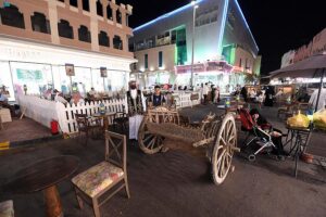 ويزدحم السوق في بعض أيام الأسبوع؛ من خلال ساحاته الواسعة وشوارعه بالوافدين، حتى أصبح ملتقى يجمع مختلف الجنسيات العربية والأجنبية أثناء التبضع، وعلى طاولات وجنبات المطاعم والبوفيهات المتنوعة الموجودة التي تقدم الوجبات الغذائية والعصائر، حيث يستقطعون بين أمكنتها أوقاتا للراحة، بعد جولات من التبضع والمشتريات، يستمتعون خلالها بالأحاديث والحياة المعيشية اليومية، والذكريات.