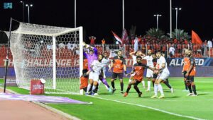 وكان الرائد قد افتتح التسجيل عن طريق أحمد الزين في الدقيقة 18 ، قبل أن يدرك الجزائري أمير سعيود التعادل لأصحاب الأرض عند الدقيقة 34، ويردفه بهدف شخصي ثانٍ له ولفريقه في الوقت بدل الضائع من الشوط الأول عند الدقيقة 45+3، وفي الشوط الثاني تمكن رائد الغامدي من تعادل النتيجة لصالح الرائد عند الدقيقة 75.
