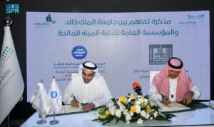 وجرى توقيع مذكرة تفاهم بين الجامعة والمؤسسة العامة لتحلية المياه المالحة؛لتعزيز التعاون في مجال تحلية المياه والطاقة الشمسية من خلال تنفيذ البحوث المشتركة، وإيجاد حلول مبتكرة ومستدامة للتحديات التي تواجهها صناعة تحلية المياه المالحة، وذلك من خلال توفير الجامعة باحثين متخصصين في تحلية المياه والطاقة الشمسية، لمعالجة مشكلات المياه المالحة والطاقة من خلال البرامج البحثية المخصصة لذلك،بالإضافة إلى تسهيل إجراء زيارات بين منسوبي الجهتين المتخصصين، وعقد اللقاءات العلمية، وكذلك الاستفادة من المعامل والأجهزة الموجودة في كلا الجهتين؛فيما يخدم أهداف التعاون البحثي بين الطرفين.