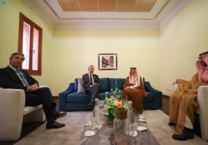 التقى صاحب السمو الأمير فيصل بن فرحان بن عبدالله وزير الخارجية، اليوم، معالي وزير خارجية جمهورية البرتغال جواو كرافينيو، وذلك على هامش الاجتماع الوزاري للتحالف الدولي ضد تنظيم داعش الإرهابي بمدينة مراكش في المملكة المغربية.