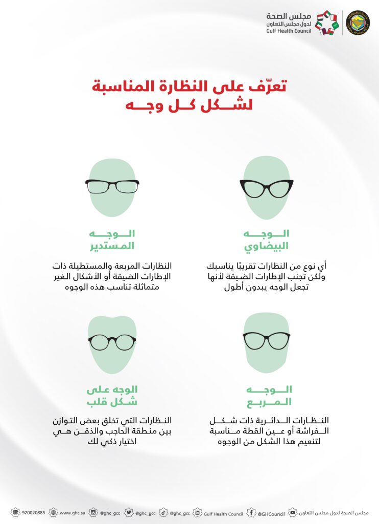 مجلس الصحة الخليجي يحدد شكل النظارة المناسبة لكل وجة .. والحجم الكبير يحمي العينين
