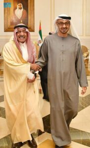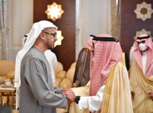 من جانبه أعرب صاحب السمو الشيخ محمد بن زايد آل نهيان عن جزيل شكره وتقديره للمشاعر الصادقة التي أبداها أصحاب السمو الملكي تجاه دولة الإمارات وشعبها في مصابهم، معبراً عن شكره على التهنئة بتوليه قيادة الدولة والتمنيات الطيبة الصادقة التي عبروا عنها.