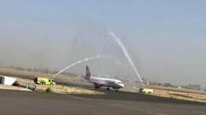 وقالت في بيان إن أول طائرة لـ”اليمنية” وصلت إلى مطار صنعاء الدولي بعد انقطاع دام أكثر من 6 أعوام قادمة من مطار عدن ومتجهة إلى مطار الملكة علياء الدولي.