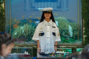 ونفذت الهيئة مبادرة مجتمعية للأطفال بأحد مدارس البنات بالمرحلة الابتدائية، بهدف التوعية بالقطاع والتعريف بمهنة البحارة، من خلال مشاركتهم القصاصات التعريفية، واستخدام وسائل التعليم الجديدة.