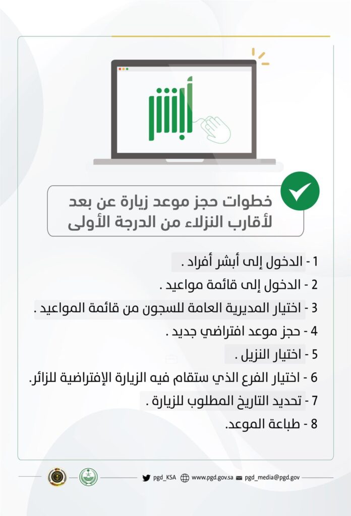 ولمعرفة طريقة حجز موعد لزيارة النزلاء عبر هذه الخطوات: