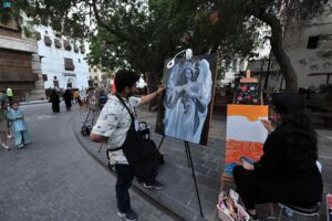 وتستوقف لوحات التشكيليين وتفاصيل البيوت التاريخية القديمة والمتاحف الأثرية زوار المنطقة وخاصة من السائحين الأجانب الذين تستهويهم هذه اللوحات والفنون، التي تزينها كل يوم عروض الليزر التي ترسم هي الأخرى لوحات بديعة على جدران هذه المباني .