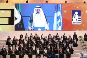 وأشار إلى أن جامعة الفيصل بما تملكه من مقومات ومؤهلات بشرية وعلمية وكفاءات في كل المجالات، تمثل حجر الزاوية فيما تقوم به المملكة من رؤية إستراتيجية لبناء الإنسان المتسلح بالعلم والخبرة، معبراً سموه عن سعادته بحضور حفل تخريج دفعات مختلفة على مستوى درجات الماجستير والبكالوريوس، مقدماً الشكر للقائمين على العملية التعليمية في الجامعة، مبدياً سعادته بفرحة وابتهاج أهالي الطلبة والطالبات الذين تخرجوا من الجامعة.