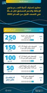 وتمت عملية تقييم الحوكمة في النصف الأول، وفق معايير محدّدة مرتبطة بالإستراتيجيّة والقيادة، والإدارة والتشغيل، والالتزام والتحكّم والرقابة، والإدارة المالية، والأنشطة التسويقية والفعاليات، وقسمت إلى خمس فئـات ، الأولى الحصول على نتيجة 2 أو أعلى “250 ألف ريال” ، الفئة الثانية الحصول على نتيجة 1.75 أو أعلى، ولكن أقل من 2 “150 ألف ريال” ، الثـالثة الحصول على نتيجة 1.5 أو أعلى، ولكن أقل من 1.75 “100 ألف ريال” ، الفئة الرابعة الحصول على نتيجة أعلى من 1.25، ولكن أقل من 1.5 “50 ألف ريال” ، والفئة الخامسة الحصول على نتيجة أقلّ من 1.25 “لا يحصل على الدعم”.
