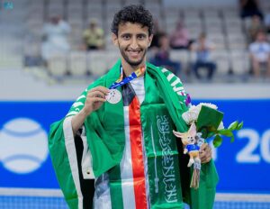 وأحرز ثنائي المنتخب السعودي للتنس عمار الحقباني وسعود الحقباني ذهبية مسابقة الزوجي، بعد فوزهما اليوم على الفريق القطري المكون من مبارك شنان وراشد نواف بمجموعتين دون مقابل (7-5/6-4)، في اللقاء الذي جمعهما في مجمع جابر العبدالله الدولي للتنس، بحضور صاحب السمو الأمير فهد بن جلوي بن عبدالعزيز بن مساعد نائب رئيس اللجنة الأولمبية والبارالمبية السعودية الذي توج الأبطال عقب نهاية المنافسات.