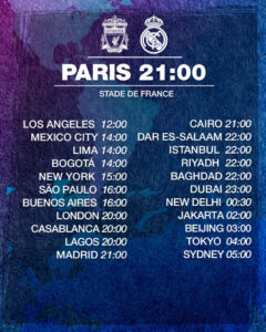 تتجه أنظار عشاق الساحرة المستديرة فى جميع أنحاء العالم، فى العاشرة مساء بتوقيت المملكة، صوب ملعب “دي فرانس” بالعاصمة الفرنسية باريس، لمتابعة المباراة المرتقبة بين ليفربول ضد ريال مدريد فى نهائي دوري أبطال أوروبا للموسم الحالي 2021-2022 وسط أجواء شديدة الحماسية بين الفريقين.