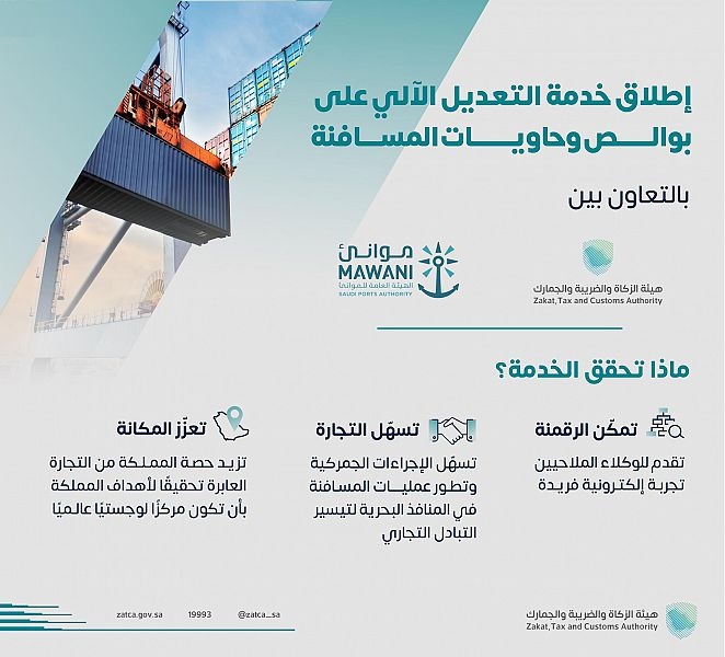 “الزكاة والضريبة والجمارك” تُطلق خدمة التعديل الآلي على بوالص وحاويات “المُسافنة” في جميع المنافذ البحرية