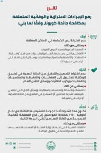 فقد تقرر رفع الإجراءات الاحترازية والوقائية المتعلقة بمكافحة جائحة كورونا، وفقاً لما يلي: