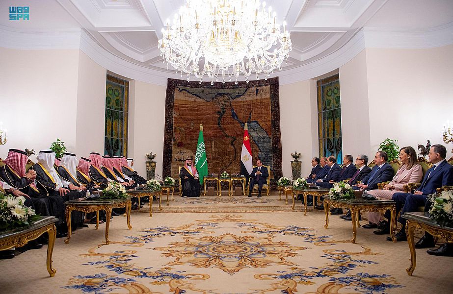 سمو ولي العهد ورئيس جمهورية مصر العربية يعقدان لقاءً ثنائياً وجلسة مباحثات موسعة