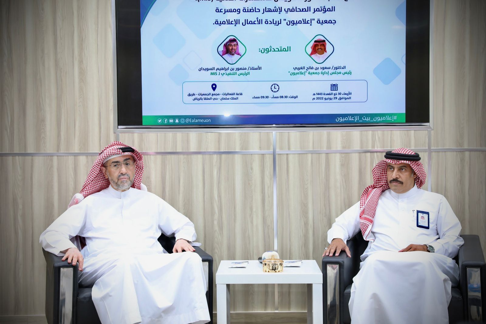 أطلقت جمعية ” إعلاميون” بالشراكة مع مكتب منصور السويدان للاستشارات المالية (mis)، حاضنة ومسرعة “جمعية إعلاميون” لريادة الأعمال الإعلامية خلال مؤتمر صحافي عقد بمقر الجمعية في حي الملقا بالرياض.