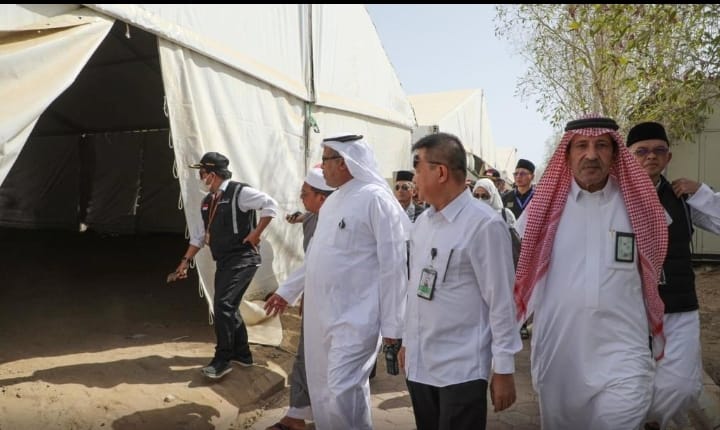 بحث عضو مجلس النواب بجمهورية إندونيسيا السيد عبد الواحد مع عضو مجلس إدارة شركة مطوفي حجاج جنوب شرق آسيا رئيس فريق الحج التنفيذي وليد رشيدي، بحضور عضو الفريق التنفيذي للحج عبد الرحمن عاشور أعمال التجهيزات والتهيئة لإسكان حجاج اندونيسيا في المشاعر المقدسة، وذلك خلال جولة تفقدية للوقوف على جاهزية الفرق العاملة قبيل انطلاق الحجيج إلى مشعر عرفات.