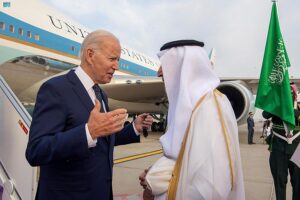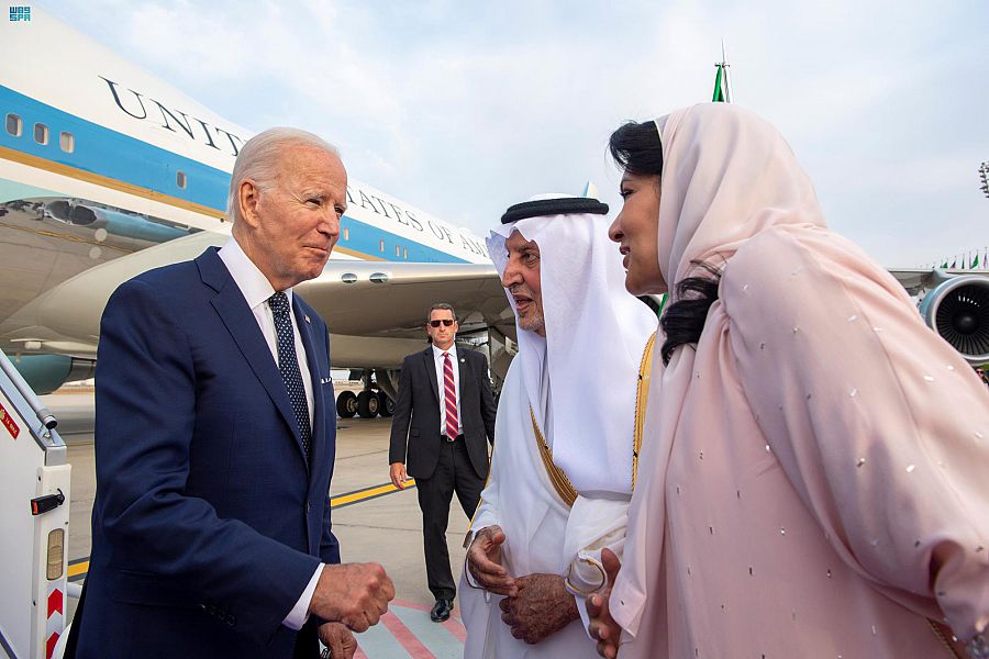 بدعوة كريمة من خادم الحرمين الشريفين الملك سلمان بن عبدالعزيز آل سعود ـ حفظه الله ـ، وصل فخامة الرئيس جوزيف بايدن رئيس الولايات المتحدة الأمريكية، إلى جدة، اليوم، في زيارة رسمية للمملكة العربية السعودية تستمر يومين، يلتقي خلالها خادم الحرمين الشريفين، وصاحب السمو الملكي الأمير محمد بن سلمان بن عبدالعزيز ولي العهد نائب رئيس مجلس الوزراء ـ حفظهما الله ـ.