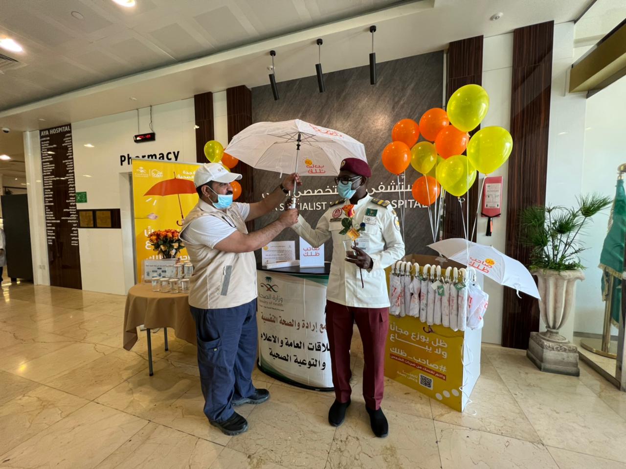 دشن مجمع إرادة والصحة النفسية لخدمات إرادة بجدة ممثلاً في إدارة العلاقات العامة والإعلام والتوعية الصحية وقسم التغذية فعالية صاحب ظلك التي تعنى بأهمية الصحة العامة للفرد وضرورة إصطحاب المظلات الشمسية والإكثار من شرب الماء مع تحديد الأوقات المناسبة للخروج من المنزل بما يتزامن مع إنخفاض درجات الحرارة والبعد عن التعرض لإصابة ضربات الشمس ، حيث دُشنت هذه الفعالية في مدخلي مجمع إرادة والصحة النفسية لخدمات إرادة بجدة داخلياً في العيادات الخارجية والبهو الرئيسي للمجمع وخارجياً في مستشفى آية الطبي وجمعية عيون جدة الخيرية لنشر ثقافة التوعية الصحية بالمحافظة على الصحة العامة في فصل الصيف.