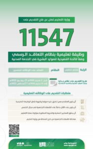 وزارة التعليم تعلن بداية التقديم على (11547) وظيفة تعليمية بنظام التعاقد الرسمي وفقاً للائحة التنفيذية للموارد البشرية في الخدمة المدنية